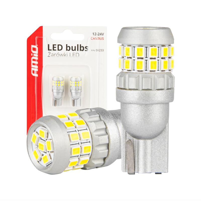 Set 2 becuri T10, 30 LED-uri SMD2016, 12-24V, W5W, CANBUS, alb 04233 Amio.