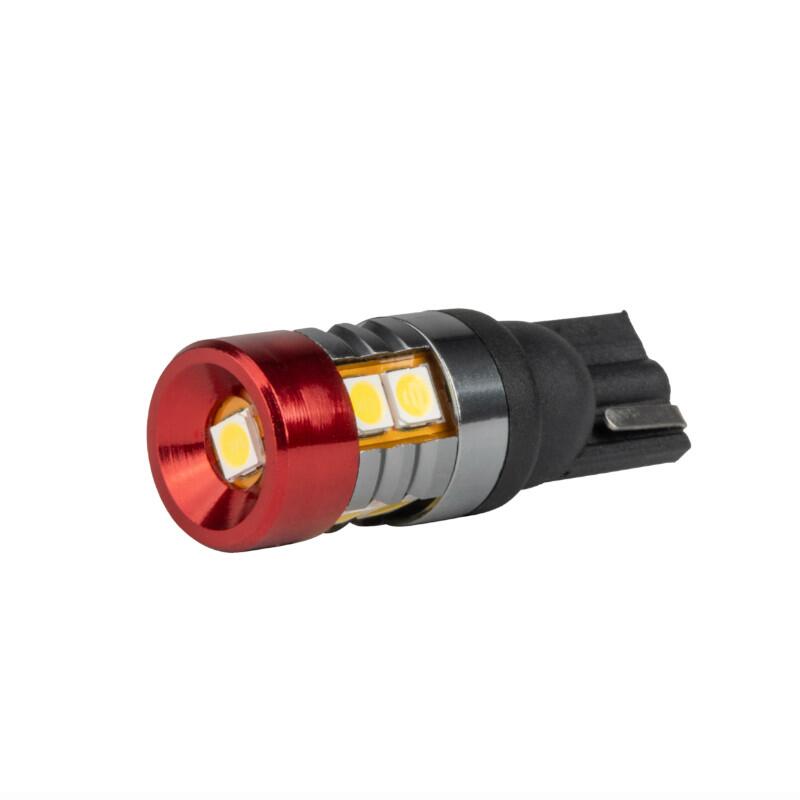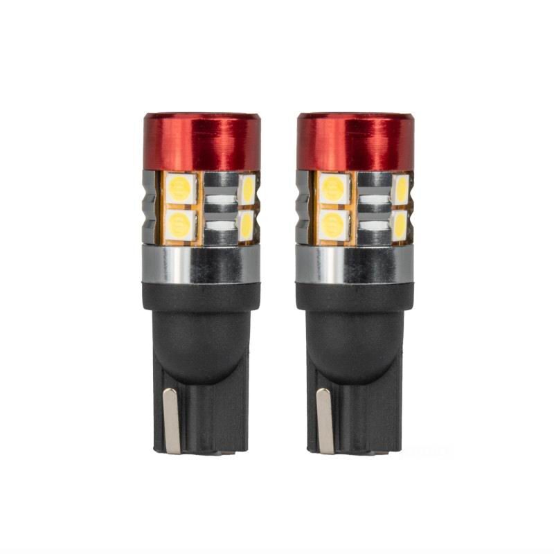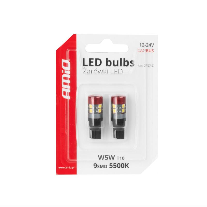 Set 2 becuri T10, cap rosu, 9 LED-uri, SMD 3030, 12-24V, W5W, 5500K, Canbus, alb, 04240 Amio.