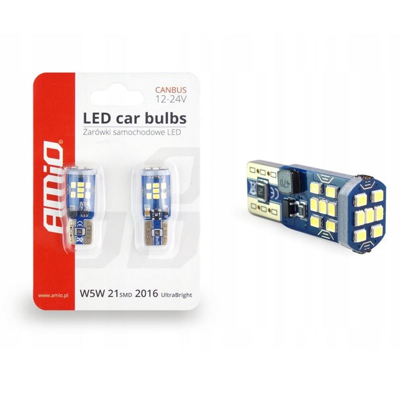 Set 2 becuri T10 cu Led, 12V, W5W, 1W, Ultra Bright Canbus 02445 Amio.