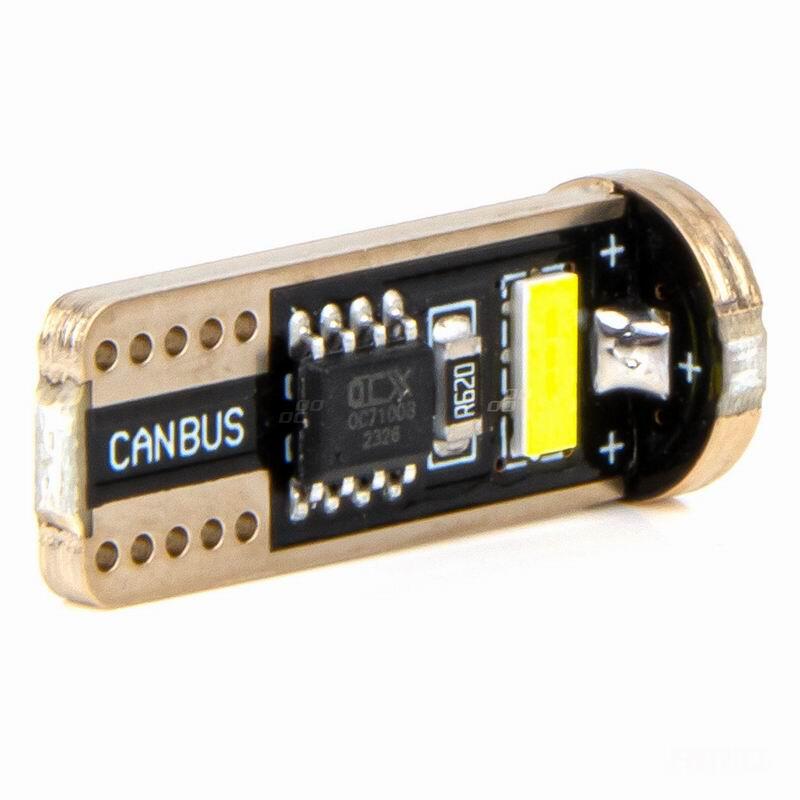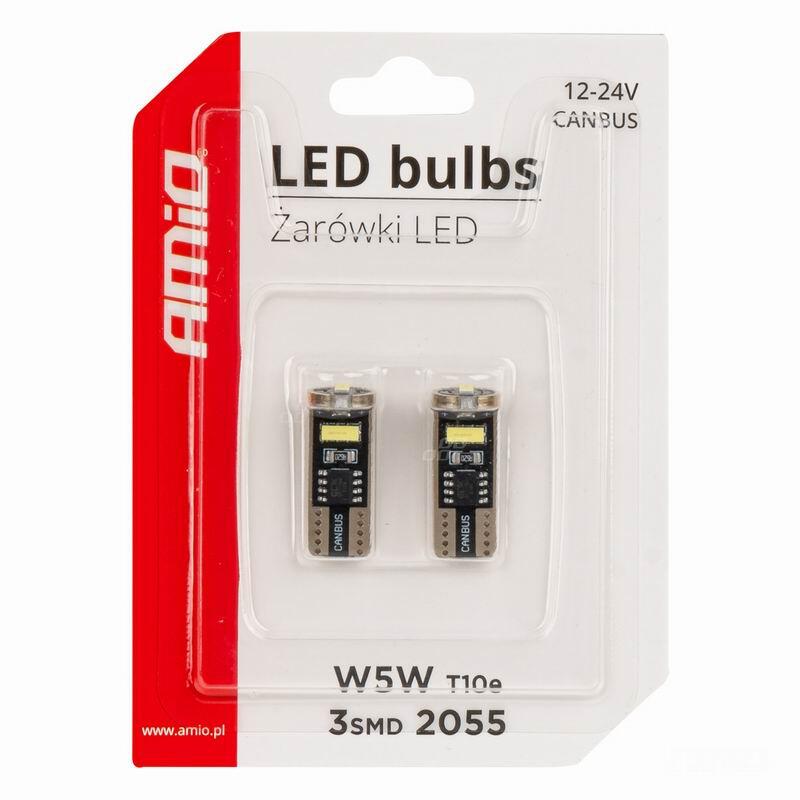 Set 2 becuri T10e, 3 LED-uri SMD2055, 12-24V, W5W, CANBUS, alb 03720 Amio.