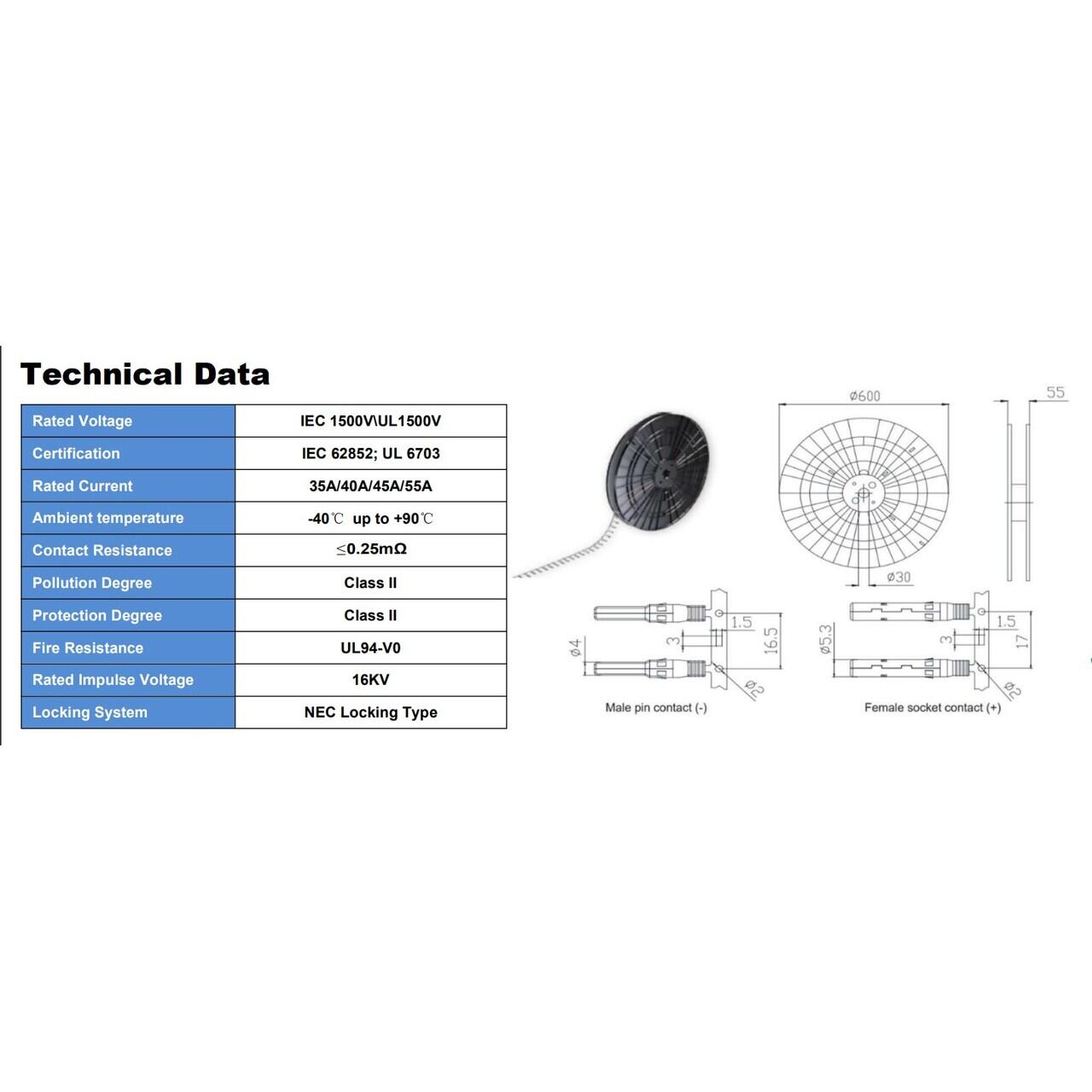 Set 2 conector tip MC4 1.5KV premium, pentru panou solar, Leader PV-BN101A BK77172 /EH96