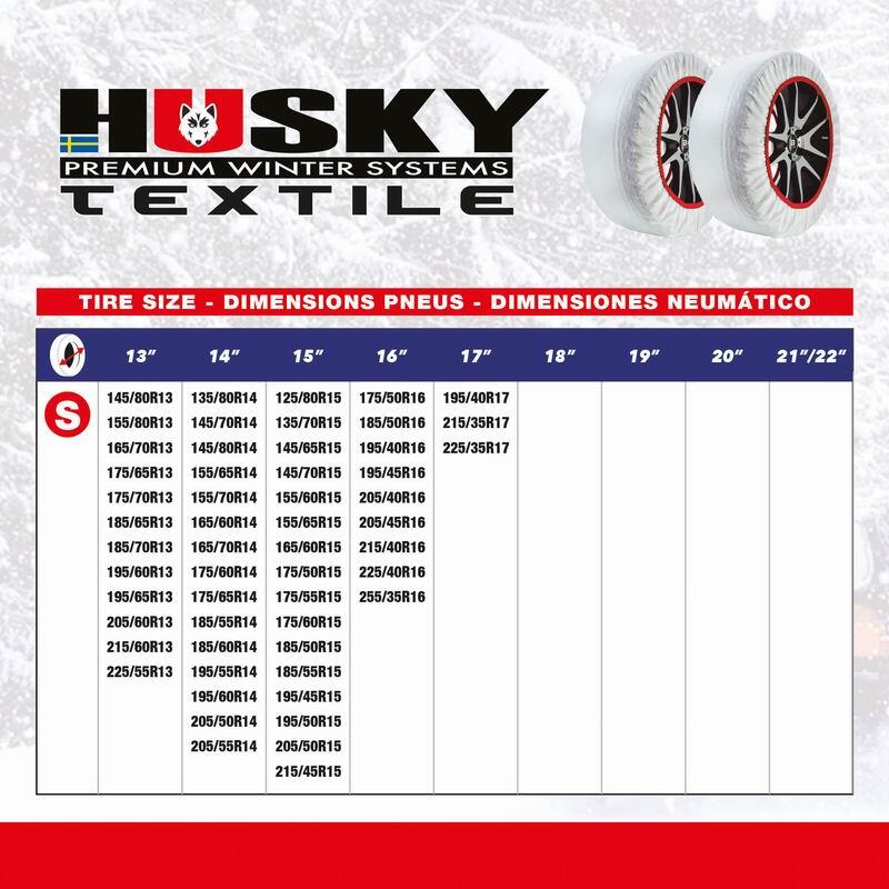 Sosete textile pentru zapada de la HUSKY din tesatura high-tech care ofera o aderenta excelenta pe zapada si gheata. Ciorapii se potrivesc mult mai usor decat lanturile metalice de zapada iar cei 2 ciorapi pot fi pusi pe roti in cateva minute. Fiind mult mai usoare decat lanturile metalice pentru zapada, acestea sunt o optiune excelenta de pastrat in vehicul in caz de urgenta. Pentru off-road sau calatorii frecvente pe zapada adanca, lanturile metalice sunt cea mai buna optiune. Dar pentru nevoile majoritatii oamenilor, sosetele de zapada sunt ideale. Tesatura poate fi spalata si refolosita daca nu este uzata semnificativ dupa utilizarea pe asfalt. Complet certificat de TUV si O-Norm pentru utilizare in toate tarile europene si zonele alpine. Alegeti dimensiunea corecta folosind lista noastra de aplicatii.