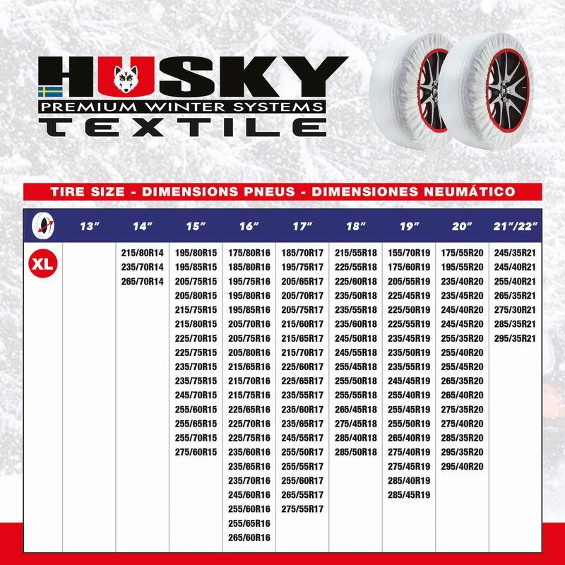 Sosete textile pentru zapada de la HUSKY din tesatura high-tech care ofera o aderenta excelenta pe zapada si gheata. Ciorapii se potrivesc mult mai usor decat lanturile metalice de zapada iar cei 2 ciorapi pot fi pusi pe roti in cateva minute. Fiind mult mai usoare decat lanturile metalice pentru zapada, acestea sunt o optiune excelenta de pastrat in vehicul in caz de urgenta. Pentru off-road sau calatorii frecvente pe zapada adanca, lanturile metalice sunt cea mai buna optiune. Dar pentru nevoile majoritatii oamenilor, sosetele de zapada sunt ideale. Tesatura poate fi spalata si refolosita daca nu este uzata semnificativ dupa utilizarea pe asfalt. Complet certificat de TUV si O-Norm pentru utilizare in toate tarile europene si zonele alpine. Alegeti dimensiunea corecta folosind lista noastra de aplicatii.