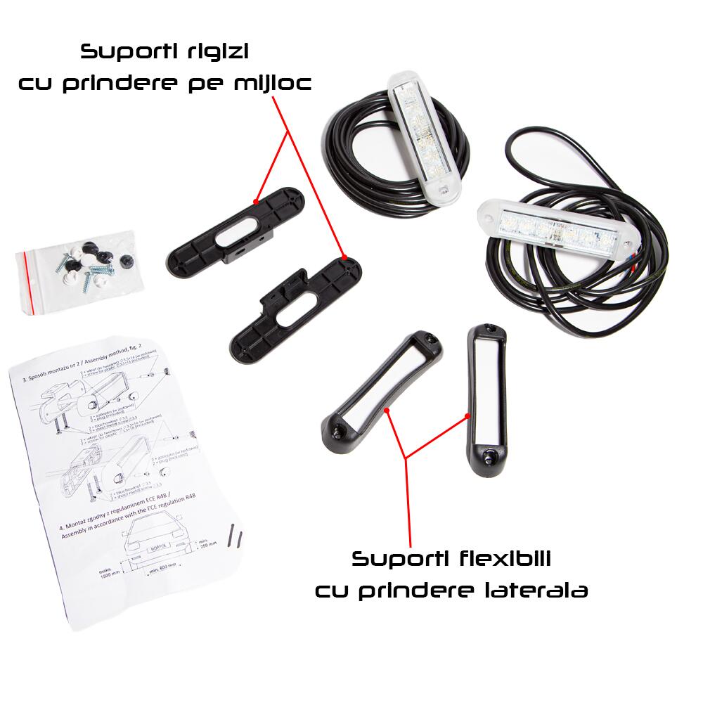 Set 2 proiectoare zi DRL 130x28.5mm, LED, 12-24V, 10W, cu suport prindere, LDR 2783 Horpol.
