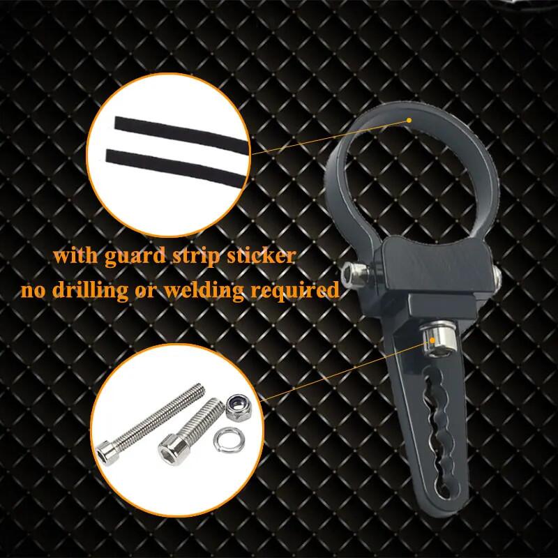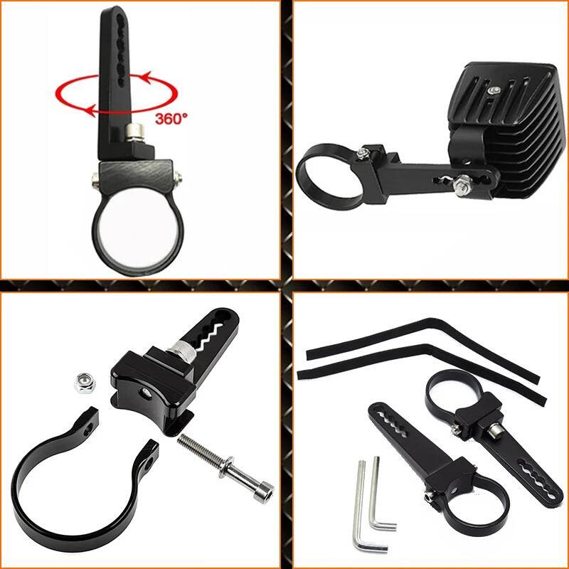 Produs calitativ, usor, ce permite adaugarea mai multor lumini pe vehicul fara gaurire; Fixeaza suportul pe teava ferm datorita striatiilor si a garniturilor;