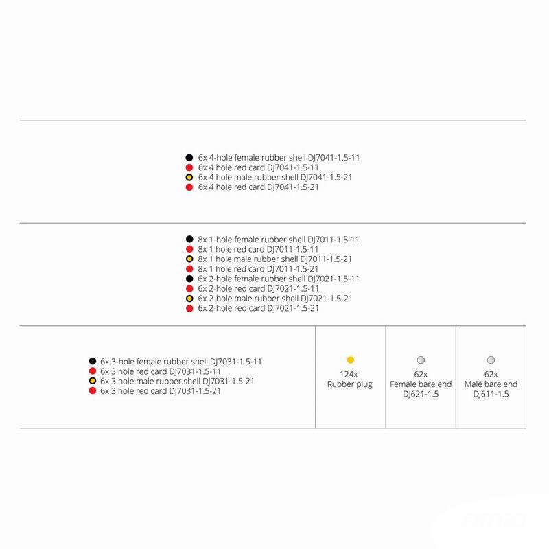 1Pin (8 seturi) 8 x conector pentru carcasa, 8 x conector pentru carcasa mama, 8 x pin tata 8 x pin mama, 16 x conector impermeabil din silicon;