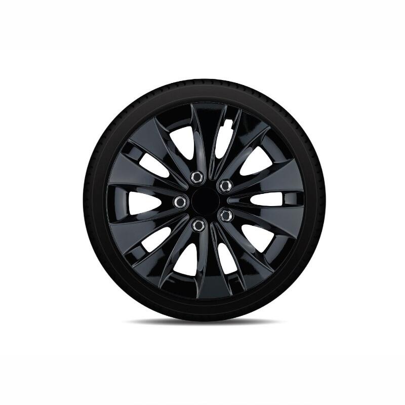 Set 4 capace roti 15inch, Storm, negru cu capacele cromate, Jestic