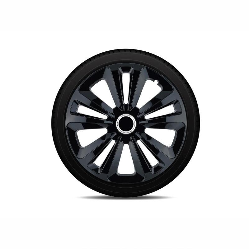 Set 4 capace roti 15inch, Terra, negru cu inel cromat, Jestic.