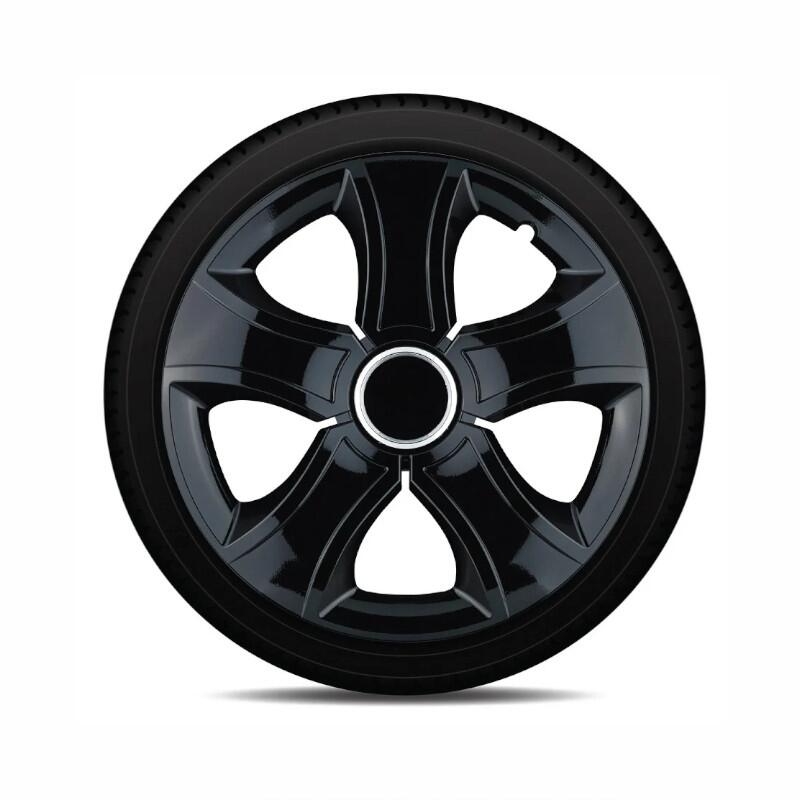 Set 4 capace roti 16inch, BIS, negru cu inel cromat, Jestic.