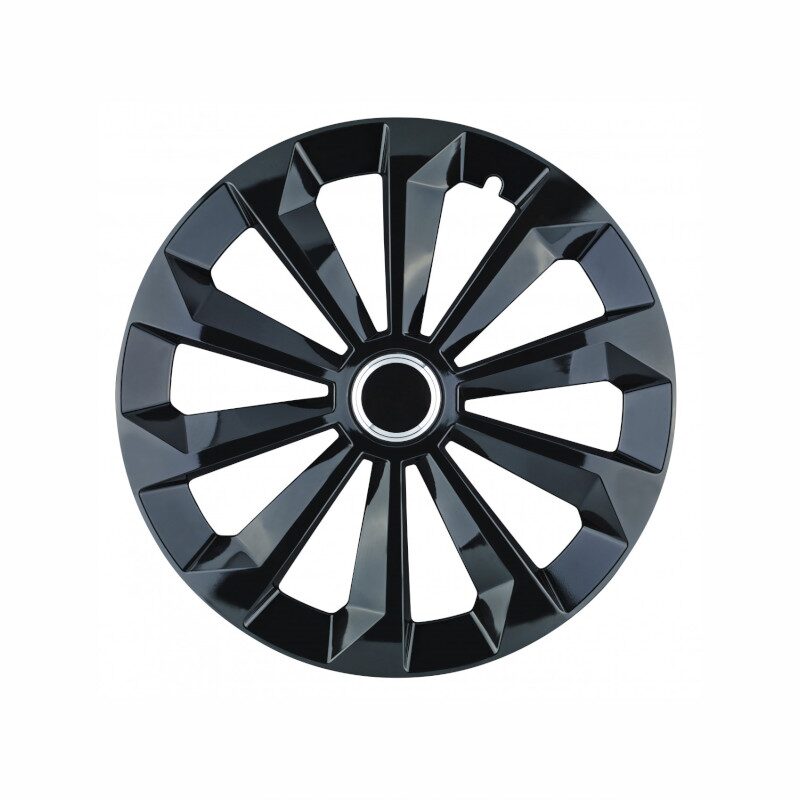 Set 4 capace roti 16inch, Fame, negru cu inel cromat, Jestic.