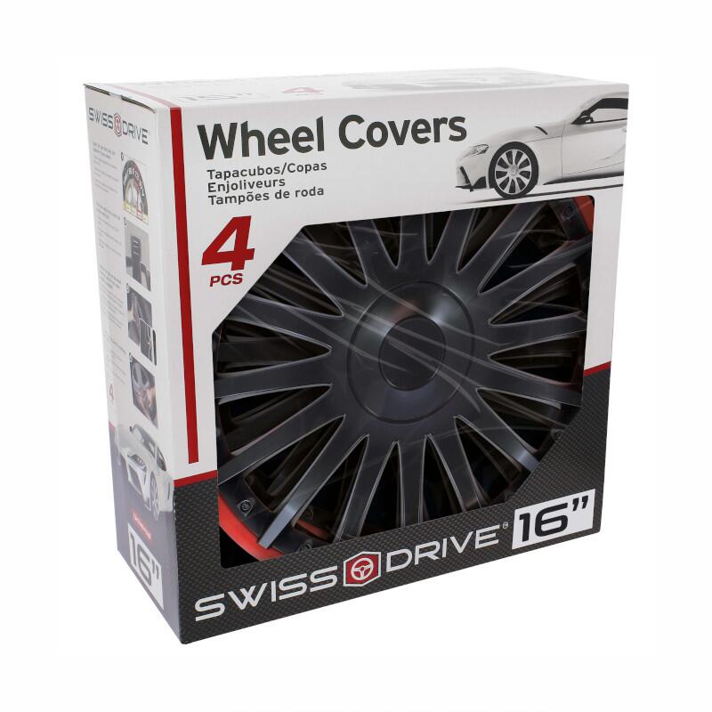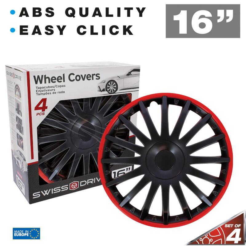 Set 4 capace roti 16inch, negre cu dunga rosie, Florida, VNJ4216 SwissDrive