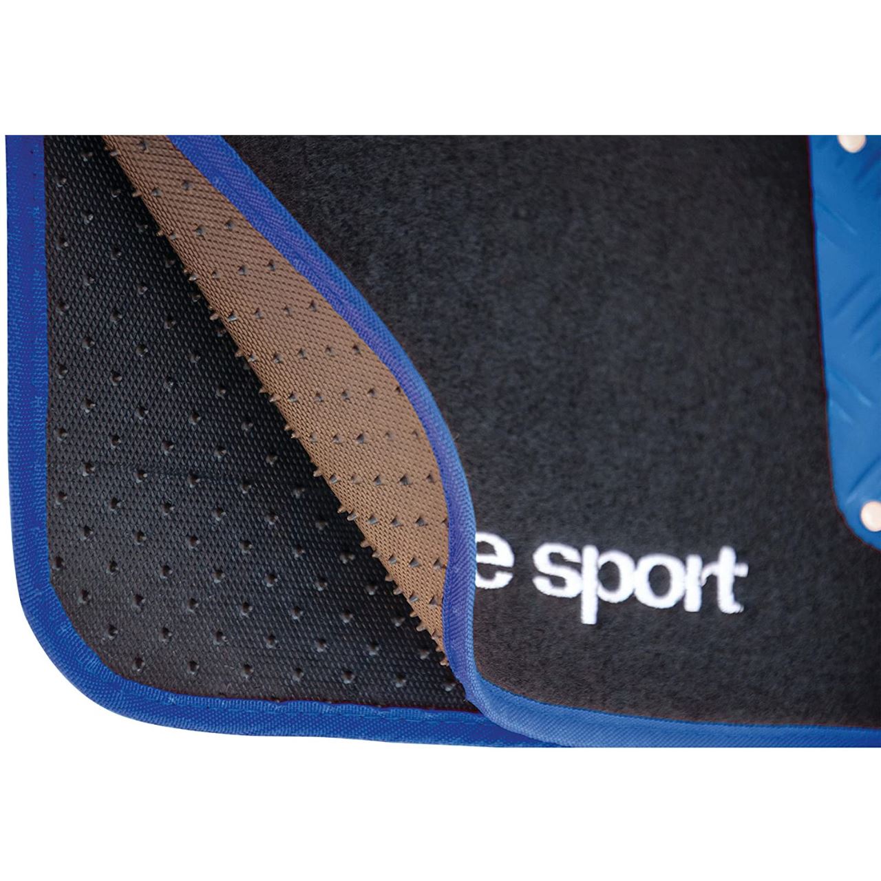 Set de presuri auto din mocheta dina cu insertii de aluminiu anodizat.