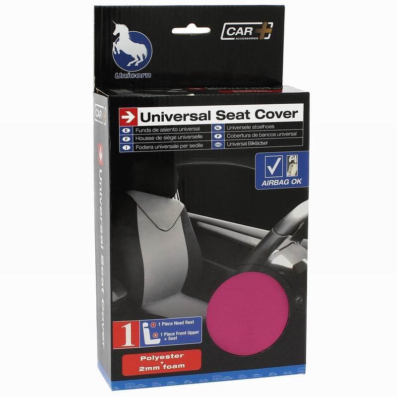 Set huse auto pentru 1 scaun cu tetiera, roz cu negru, airbag, Unicorn FUND95P Car+
