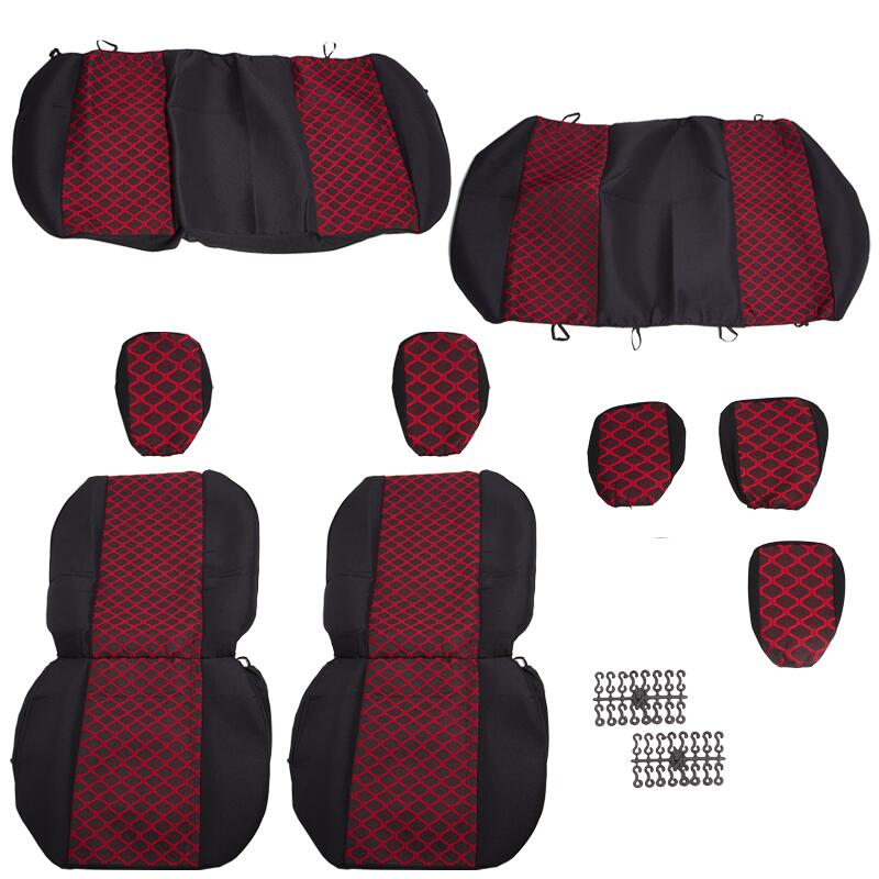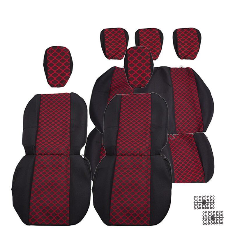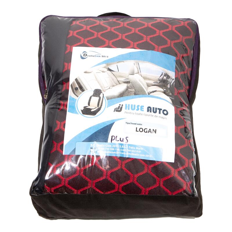 Set huse auto PLUS, 5 locuri, 2 cu 3, Dacia Logan 1, negru cu rosu, romb, DLZ56 Dealiz