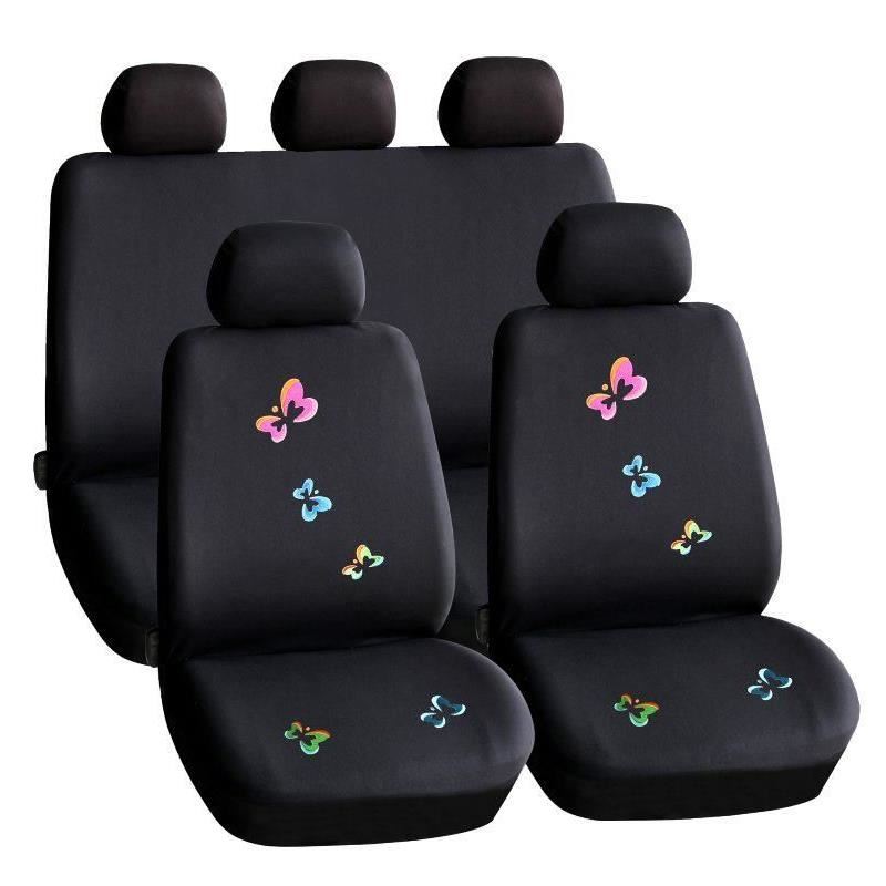 Set huse auto universale pentru 5 scaune, model cu fluturasi.