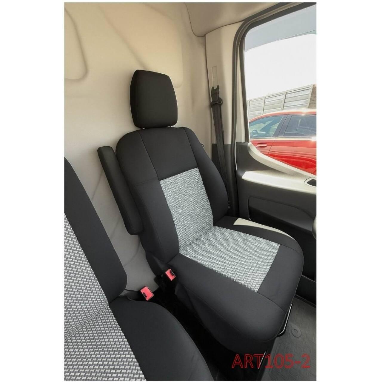 Setul de huse ART 105-2 este conceput special pentru vehicule comerciale și autoutilitare cu configurație de scaune 2+1 (șofer + banchetă pasager). Realizate din material textil durabil, cu burete integrat 10 mm la șezut și 5 mm la spătar, aceste huse oferă protecție sporită și confort pe durata drumurilor lungi.
