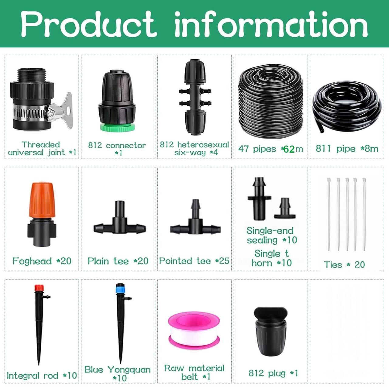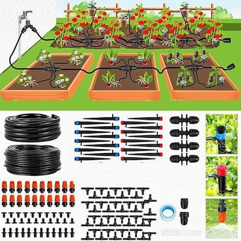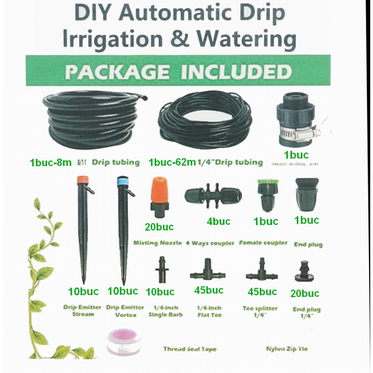 Set irigare picurare si pulverizare, 2 furtunuri 8m/62m, duze, microaspersoare, conectori 145 piese, bk PH46