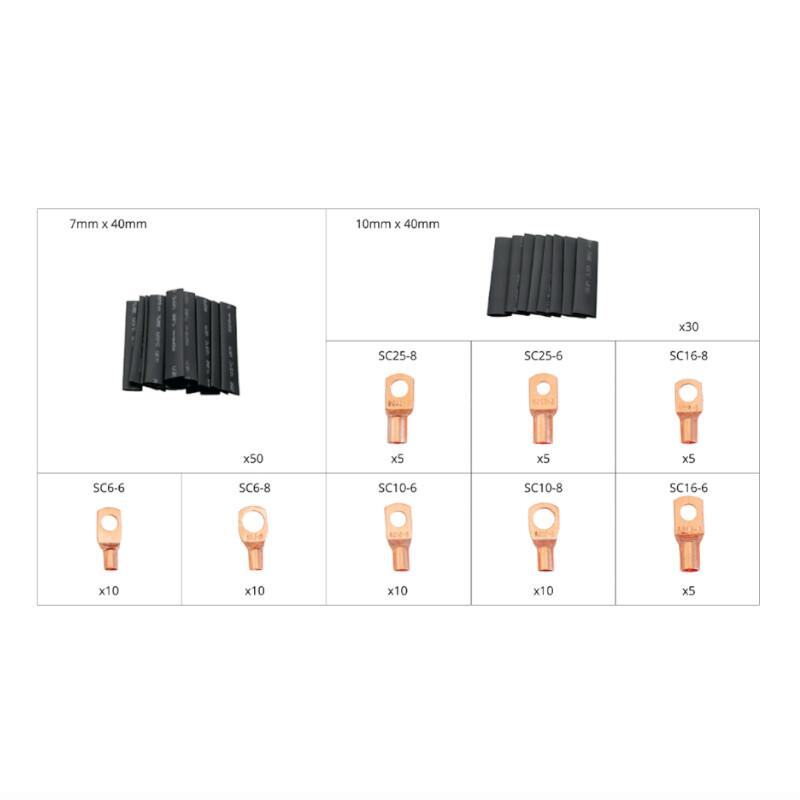 Mansoane termocontractabile - 80 de mansoane termocontractabile de diferite dimensiuni garanteaza protectia eficienta a conexiunilor impotriva umezelii, murdariei si deteriorarilor mecanice, asigurand o utilizare sigura si de lunga durata. Atunci cand sunt incalzite, mansoanele se contracta pentru a forma o conexiune stransa si robusta.