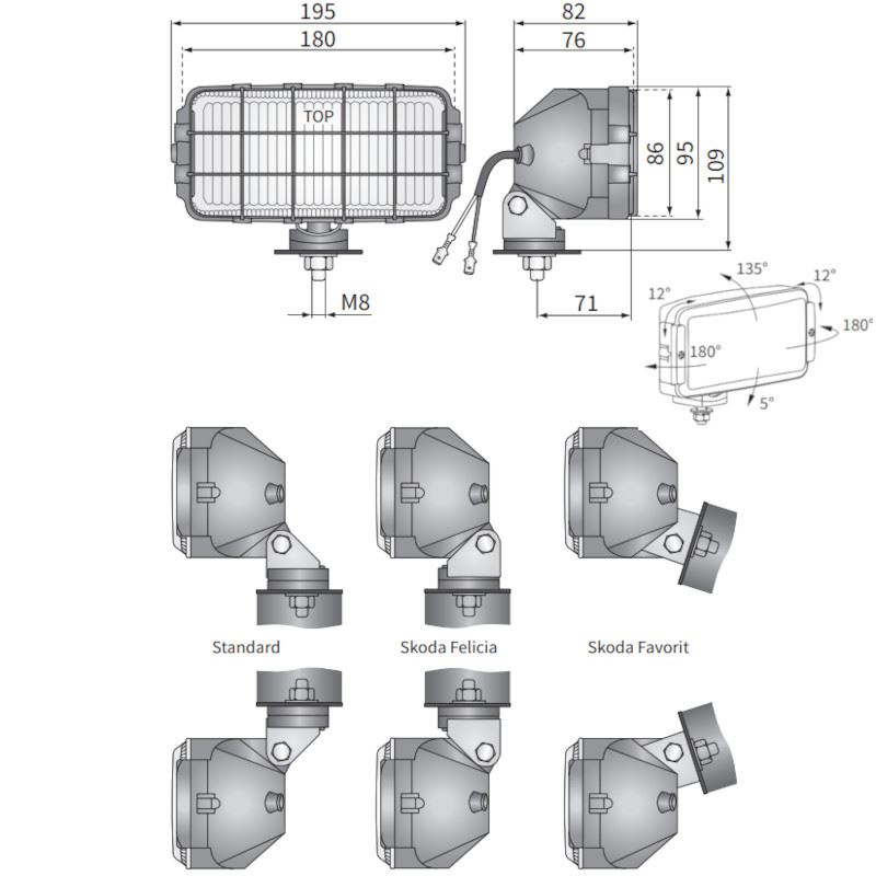Aplicatii: Far proiector faza lunga universal pentru vehicule si dedicat pentru Skoda Favorit (1991-1995), Skoda Felicia 1 (1994-1998).