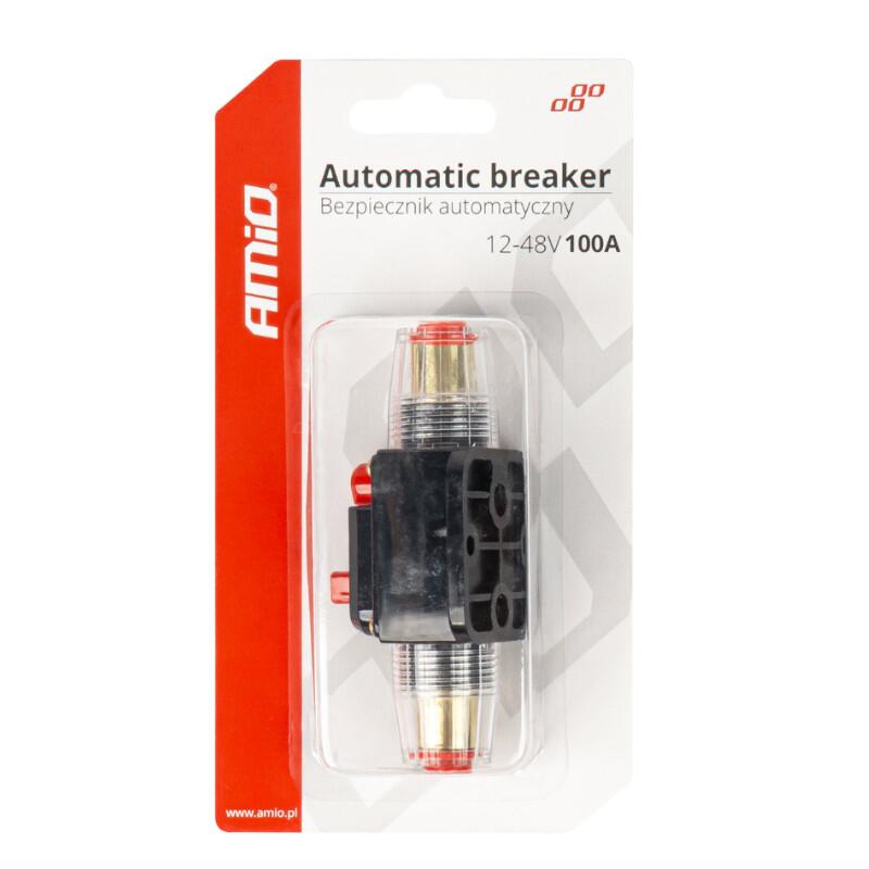 Siguranta automata rearmabila cu reset, cilindrica, 100A, 12-48V, 03821 Amio.