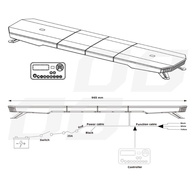 Girofar transversal,132x28cm, h8.2, 180LED, 12-24V, Amio 03345