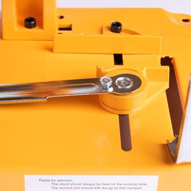 Suport metalic robust pentru fixarea polizoarelor unghiulare pe banc, ideal pentru tăieri precise, repetabile și sigure. Este conceput pentru utilizare profesională sau hobby, oferind stabilitate sporită și control excelent în timpul lucrului.