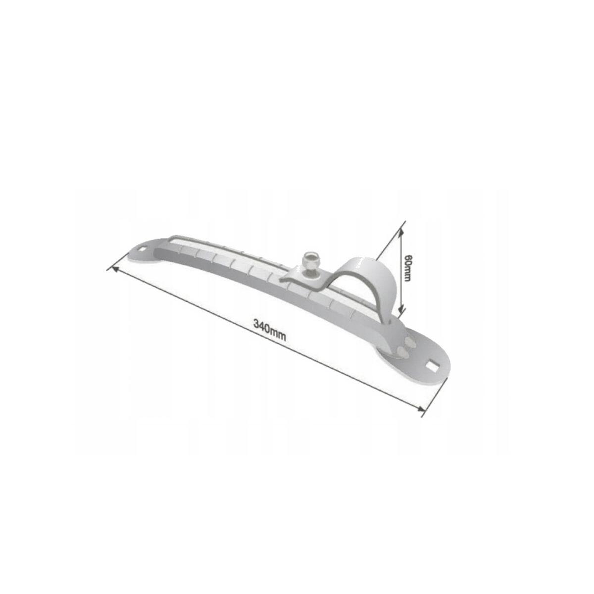 Suport metalic reglabil Solus UBM42 pentru prindere apărători noroi, lungime 340mm, diametru tub Ø42mm, fabricat din oțel galvanizat de înaltă calitate — livrat complet cu șuruburi M8, șaibe și piulițe, reglabil stânga/dreapta, .