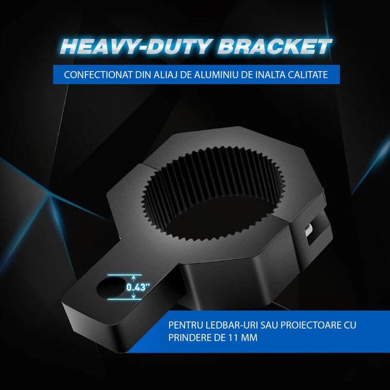 Folosit pentru montarea luminilor de lucru pe vehicule cu diametrul tevii bullbarului de 25mm / 38mm / 44mm.