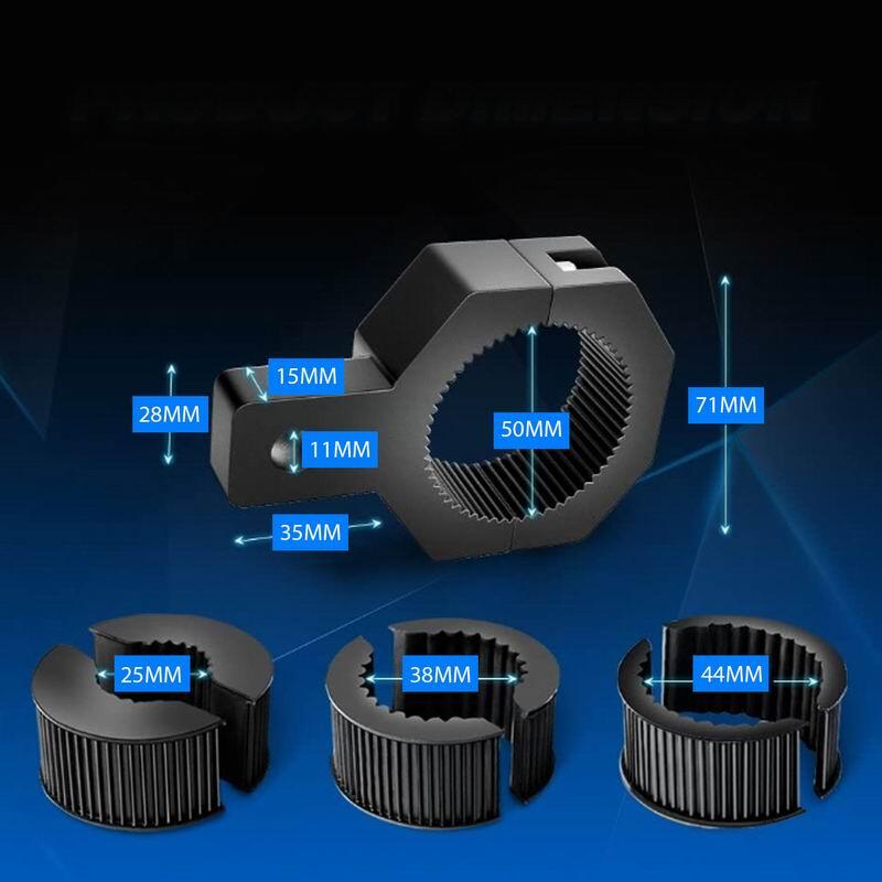 Produs calitativ, usor, ce permite adaugarea mai multor lumini pe vehicul fara gaurire; Fixeaza suportul pe teava ferm datorita striatiilor si a garniturilor;