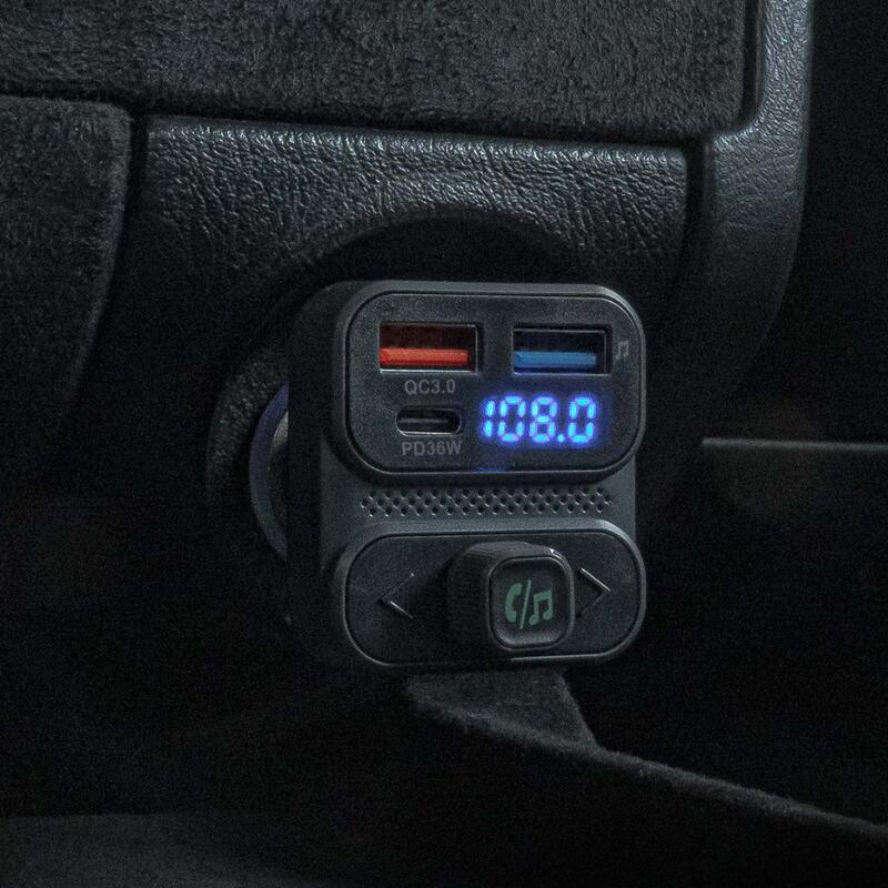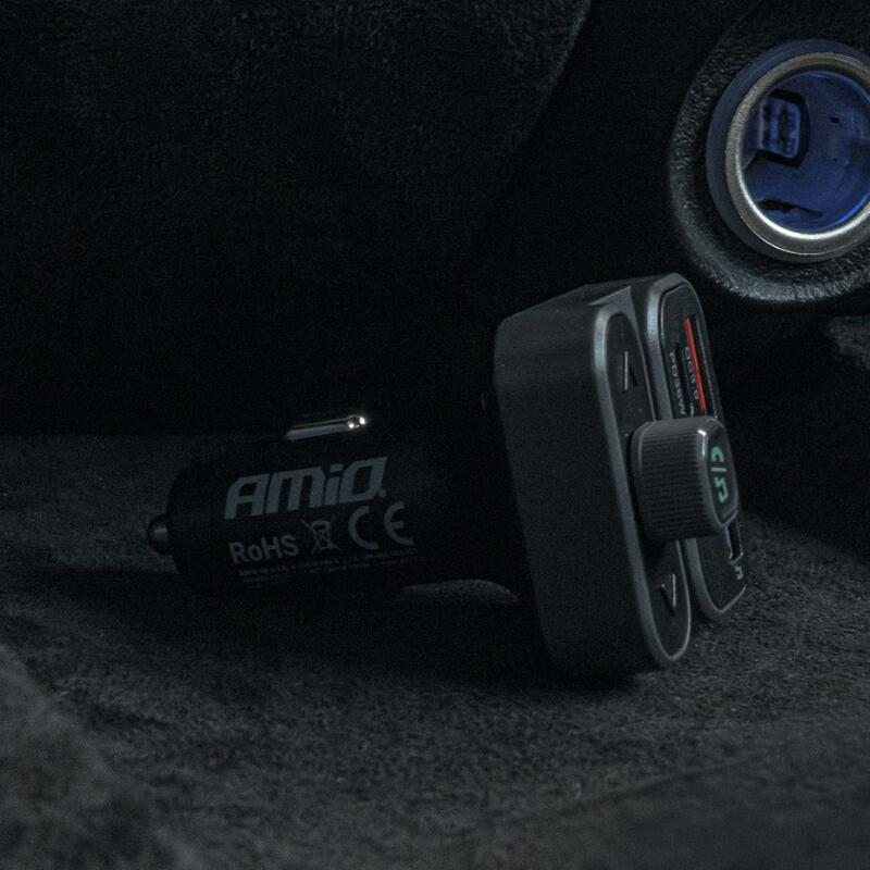 Transmițătorul FM AMIO 04649 permite redarea muzicii prin Bluetooth sau USB și oferă funcție hands-free, fiind echipat cu 3 porturi USB (inclusiv USB-C PD36W) și compatibil cu 12–24V.