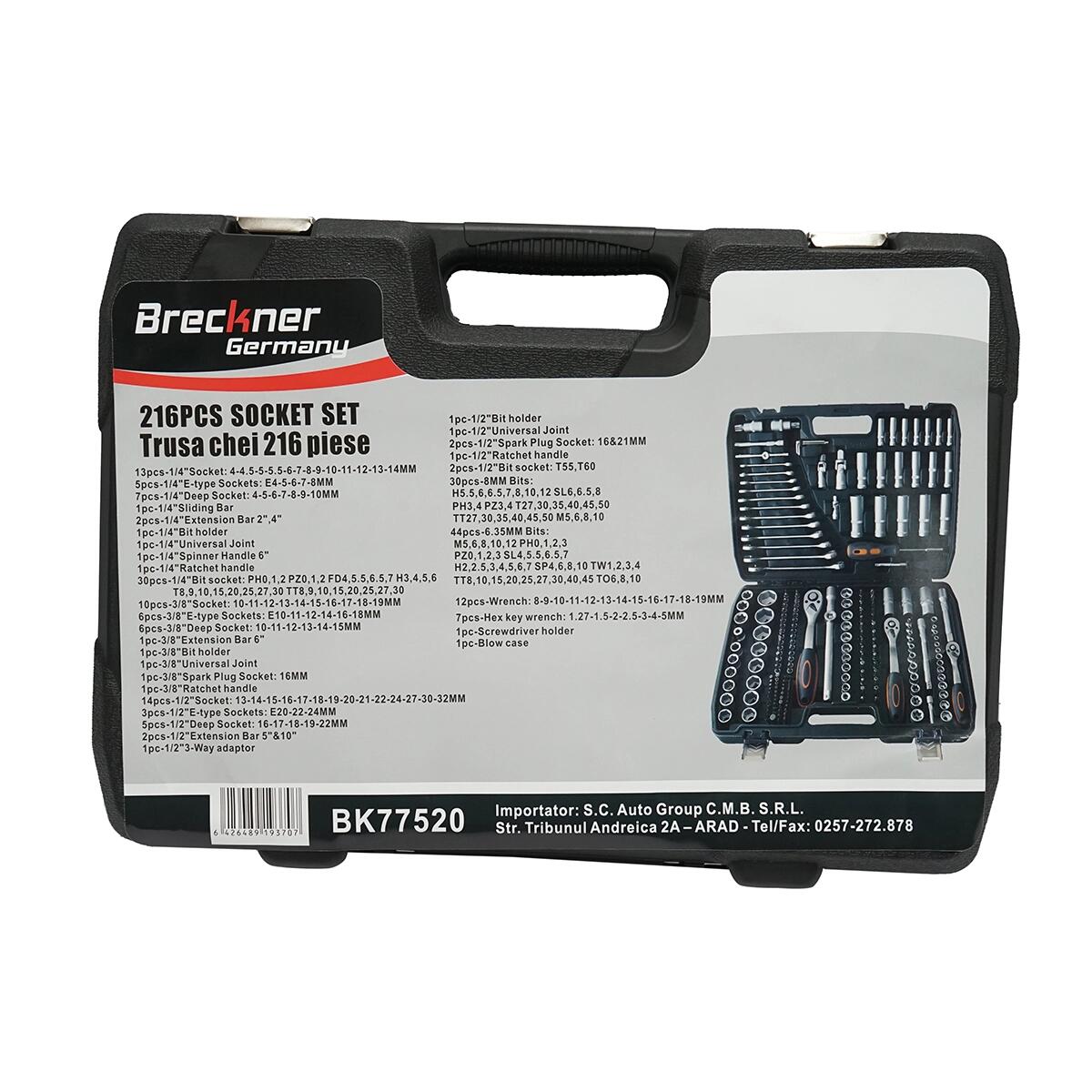 Trusa de scule combinată Breckner Germany BK77520 este un set profesional format din 215 piese, destinat atât utilizării în s...
