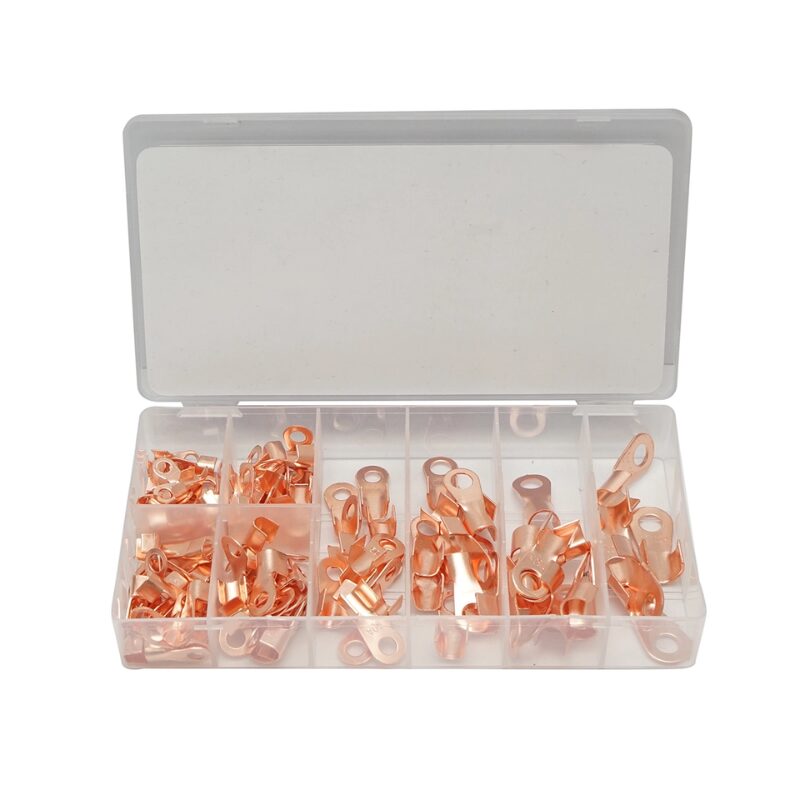 Trusa de papuci electrici din cupru neizolați 10–100A conține 120 de terminale dimensionate pentru conexiuni electrice sigure...